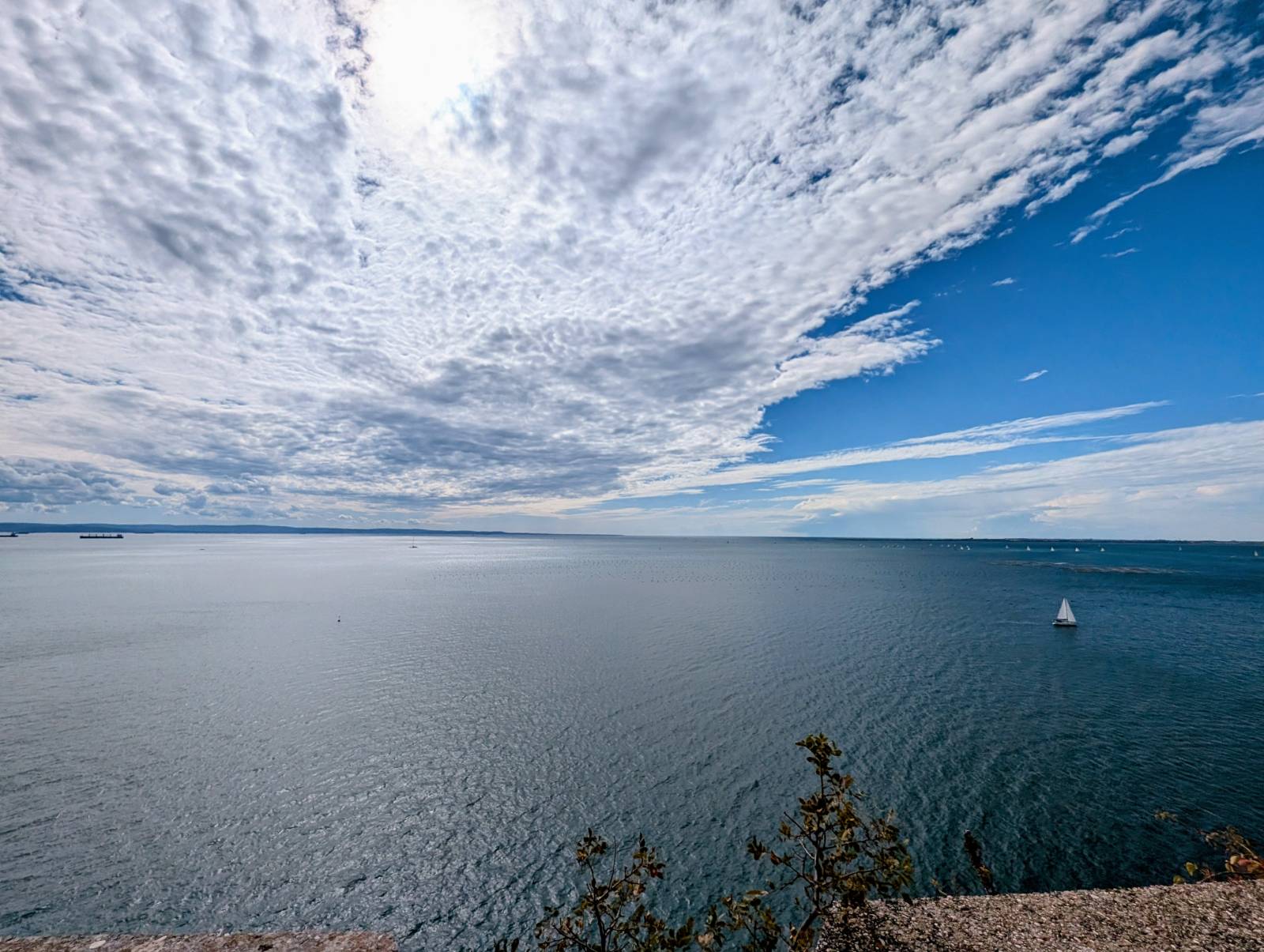 Der Jugo kündigt sich meist sanfter an als die berüchtigte Bora. Die Luft wird wärmer, oft etwas drückend, und aus der Ferne ziehen hohe Wolkenfelder auf. Die Sicht kann dunstig werden – manchmal liegt ein feiner Sandschleier aus der Sahara in der Luft.